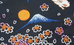 日本で古くから親しまれてきた波兎、波千鳥にチキリ鯨をあわせて、ダイナミックな図案になりました。千鳥は群れをなして飛ぶ事から良き仲間という見立てもあるといいます。
