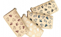 使ううちに使う人の手に馴染み、色つやも育ってくる渋染め仕上げベジタブルタンドレザーの財布に健やかな繁栄の象徴である兎をハンドプリントしてみました。