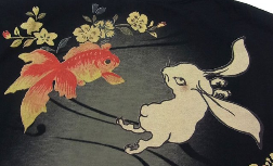 あでやかな朱の芥子の花と少しだけ憂いをもつチキリヤの兎です。ごく薄くはかな気な花びらの芥子の花の妖し気な魅力は日本画でも多く描かれました。