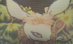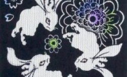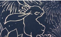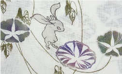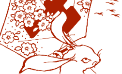 あでやかな朱の芥子の花と少しだけ憂いをもつチキリヤの兎です。ごく薄くはかな気な花びらの芥子の花の妖し気な魅力は日本画でも多く描かれました。