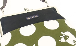 肩が下げて使えるに企画デザインした大きながま口バックです。縦26㎝に横21㎝とがま口にしては大きなサイズです。これにいっぱいの小銭を入れてみたいです。持ち運びにもとても便利でかわいいです。
