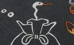 日本で古くから親しまれてきた波兎、波千鳥にチキリ鯨をあわせて、ダイナミックな図案になりました。千鳥は群れをなして飛ぶ事から良き仲間という見立てもあるといいます。